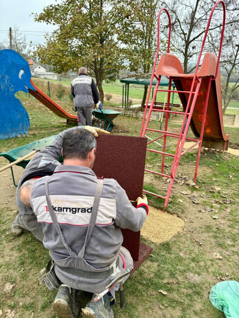 U petak, 7. studenoga, ostvarena je radna akcija uređenja i dogradnje vanjskoga prostora našeg Cvrkutića. Naime, stigla nam je radna ekipa iz tvrtke KAMGRAD d.o.o., koja nam je prethodno, u sklopu svoje hvalevrijedne inicijative unaprjeđenja života lokalne zajednice te podupiranja kvalitete života djece i mladih, ponudila donaciju materijala i pomoć u vidu radne snage potrebne za obnovu i uređenje vanjskog prostora Vrtića, ne bismo li našim malim korisnicima omogućili još sigurniji i ugodniji boravak i igru na otvorenom.